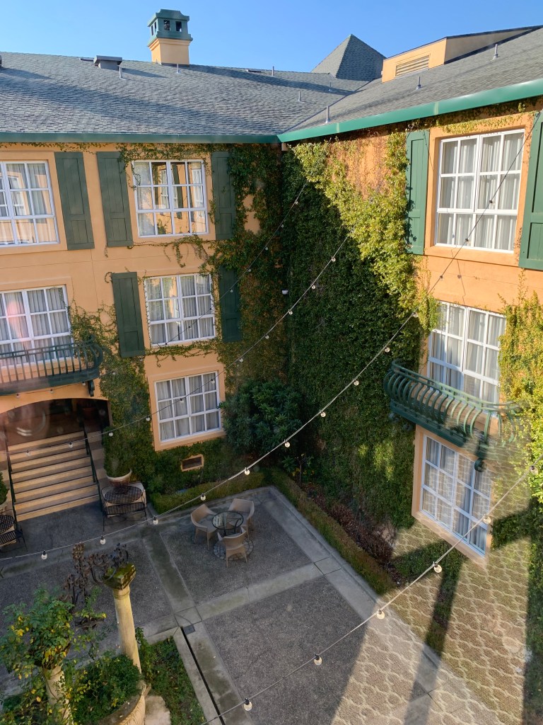 (solo stay) This was a quick business trip for one of us. The Valencia, on San Jose’s shopping and dining street, Santana Row, is in a great location if you’d like to be able to walk a bit (the Silicon Valley is not a walker’s paradise). The room had a Juliet balcony, which would have been nice for letting in the lovely April California air, but the balcony looked directly into the living room of the apartment next door, so it seemed a little uncouth to stand out there. The nicest part of the hotel was the second floor courtyard that featured a bubbling fountain. Unfortunately, the trip’s schedule didn’t allow much time for a courtyard visit.
