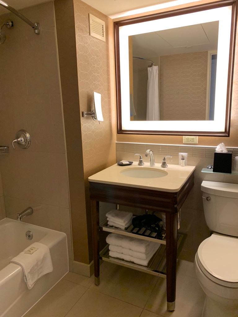 (solo stay) We’ve stayed at the Palmer House on several occasions; this time was a business stay for one of us. We’re not sure if our tastes — or standards — have just changed over the years or if the Palmer House has slipped several notches, but our recommendation is to swing by for a drink in the lobby bar and, perhaps, for a glance of the grand ballroom. But stay somewhere else. On this visit, it took three tries to get into a room that would work for three nights. And just for the record, asking for another room is not something we do regularly; this was a first.