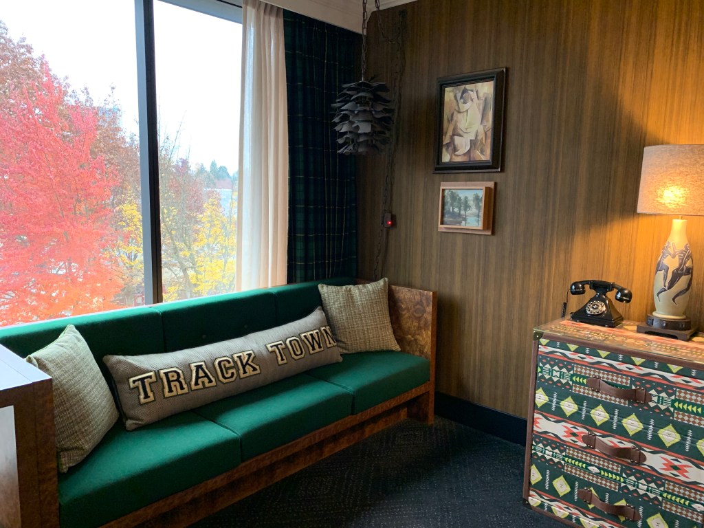 (solo stay) If you grew up in the 1970s and have fond memories of hanging out in your friend’s groovy basement, the Graduate Eugene is just right for you. It’s an homage — through and through — to that era and to Track Town USA: Eugene. This two-night stay was tied to an event at the University of Oregon and was the first visit back in almost 20 years. For a town the size of Eugene, it has remarkably few hotel options (although a handful are under construction in anticipation of the World Athletics Championships in 2021). The Graduate seemed like the best option.