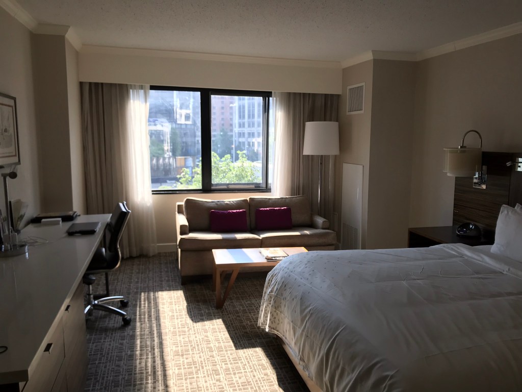 The guest room was what you find in a typical Sheraton. Fine, but nothing special. We did pay for an upgrade to get a room on the 32nd floor that had fun views of City Hall and its surroundings.