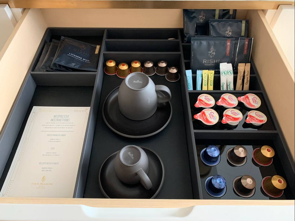During our two-night stay, this first experience with the valet was representative of our encounters at the hotel. From the reception staff and housekeepers to the servers and bartenders at the hotel’s two restaurants, we felt like we were dealing with pros. And we’ll admit, it had been some time since we had experienced that. The pandemic and its aftermath had understandably thrown the hospitality industry for a loop, and for the last few years we have calibrated our expectations. But with the exception of a few small things – and things we didn’t really need such as the clothes pressing serving – the Four Seasons seemed be operating on all cylinders, and we embraced it.