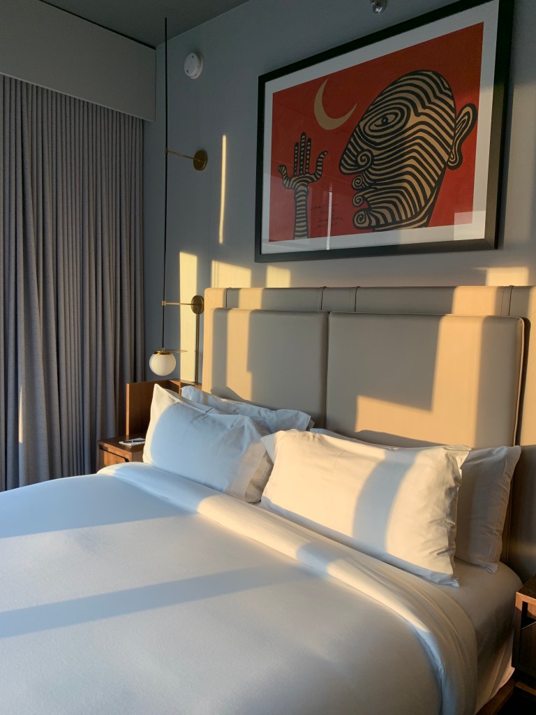 While we have much good to say about ModernHaus, there were a few misses. Perhaps because we’ve stayed in some truly exceptional properties, we were disappointed to see the wear-and-tear on the room and its furnishings, particularly considering the hotel opened as the ModernHaus fewer than two years ago (it was formerly the James Hotel but went through an extensive reimagining after being acquired by urban-development firm Thor Equities in 2017). The nicks and dings were visible reminders that many people had come and gone in the room, and then when we found both a pillowcase and a towel with stains, a sink that didn’t drain properly, and white duct tape securing something around one of the windows, the illusion of luxury faded. We know how hard it must be to keep hotels in pristine condition — and we know how carelessly guests can treat things that aren’t their own — but we’ve seen high standards maintained. Modern design leaves little room for scratches and dents; anything short of perfect detracts from the aesthetic.