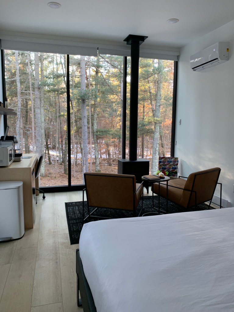 The design and the quality of the furnishings and finishes exceeded our expectations. This is not your typical rustic cabin. We’ll note that Nature Link is only a few years old, and maintaining the standards will surely take constant work. In addition to guests, who can be hard on a property, the outside elements are relentless. On the days we stayed, the difference in the outside and inside temperatures was causing a fair amount of condensation on the window frames, and even though it was winter, we still tracked sand inside whenever we entered (the resort helpfully leaves a broom in the cabin). We hope the simple design and relatively rugged materials of the cabins lead to easier upkeep. In addition, because the resort is new, it’s still under development, and, although it was hard to tell in the winter, the landscape looks to be in recovery from some of that development.