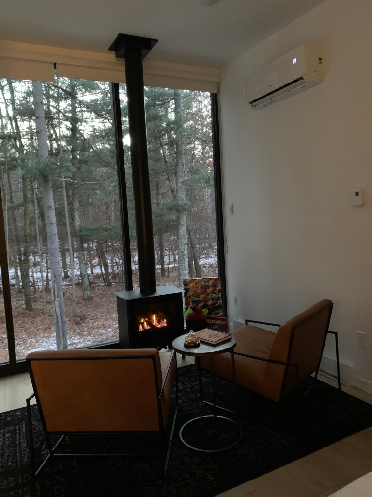 Without snow, many winter activities were out of the question, but that turned out to be just fine; it meant we could truly take it slow. Between short bursts of energy to walk around the property, visit the sauna, or explore Nisswa, we mostly just settled down near the fire and gazed out to the forest (or played the classic board game Aggravation). On our second day, we were entranced by a pileated woodpecker knocking away at a nearby tree and later watched as a herd of deer moved slowly across our view, feeding on the nibbles below the brush.