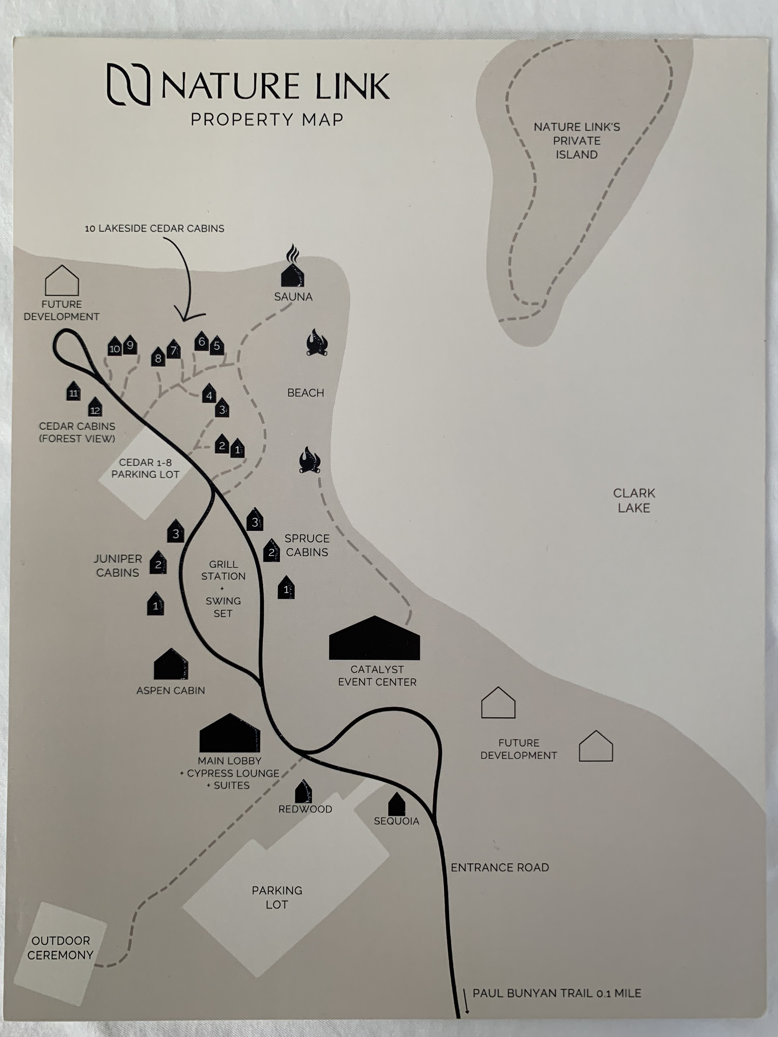 Nature Link is in the Brainerd Lakes area, and although the area is a popular destination and a place where many friends have cabins, we had never spent time there, opting instead typically to head to the North Shore of Lake Superior when we want to get into nature. We can’t even remember exactly how we found Nature Link – it was likely just a Google search of resorts near Nisswa, MN – but what we saw online was intriguing: modern, tastefully finished cabins on a smaller, off-the-beaten-path lake with an aesthetic that emphasizes slowing down and spending time with nature near the water and among the woods.