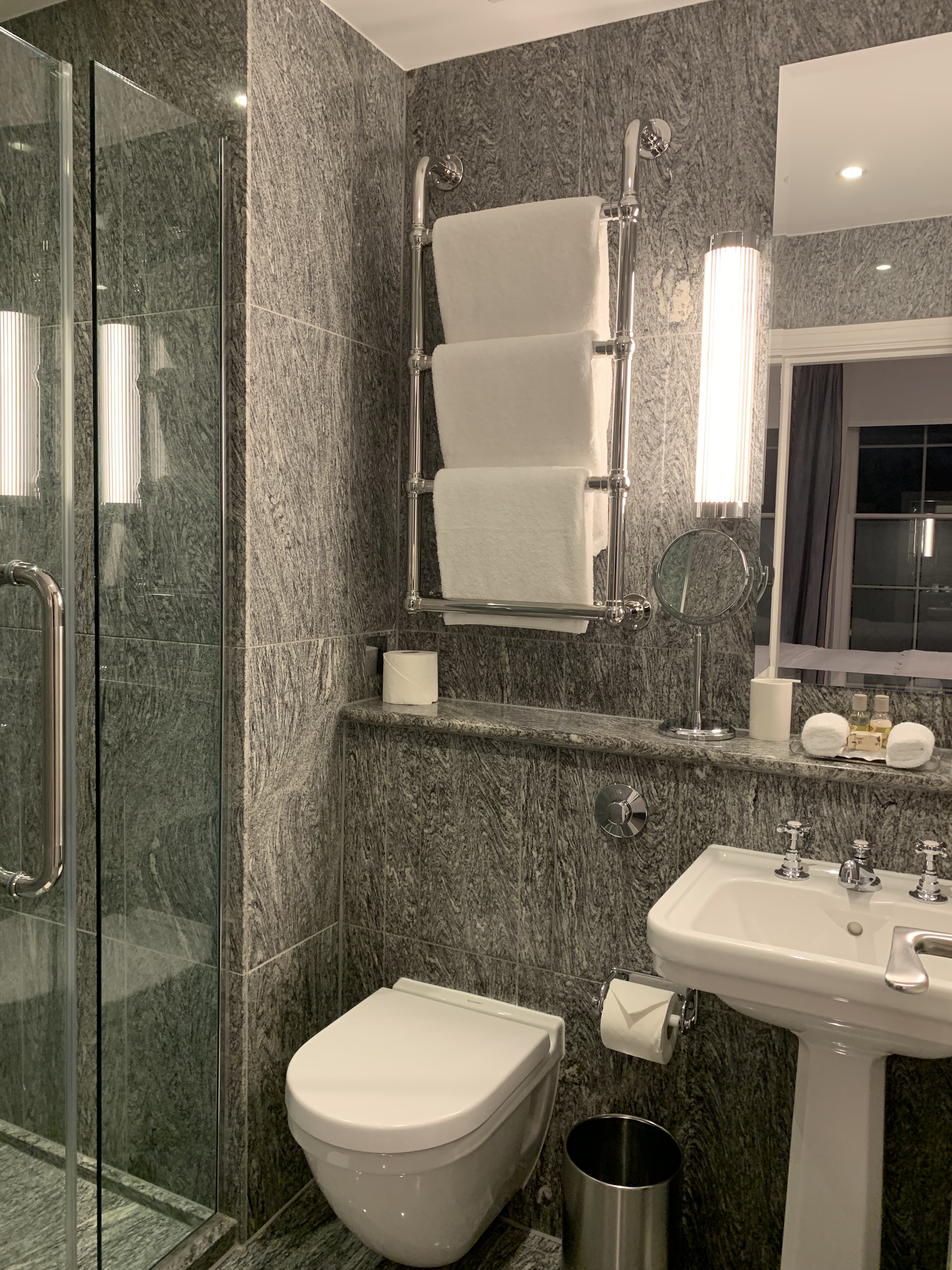 My only small complaint was that our window had frosted squares on the bottom half that impeded our view. We could see that our room looked out to some mechanicals for the building, so we understood the purpose of the frosting, but it made me feel a little claustrophobic when we were in the room during the day. If we were to return, we’d book a room with a view of Dorset Square.