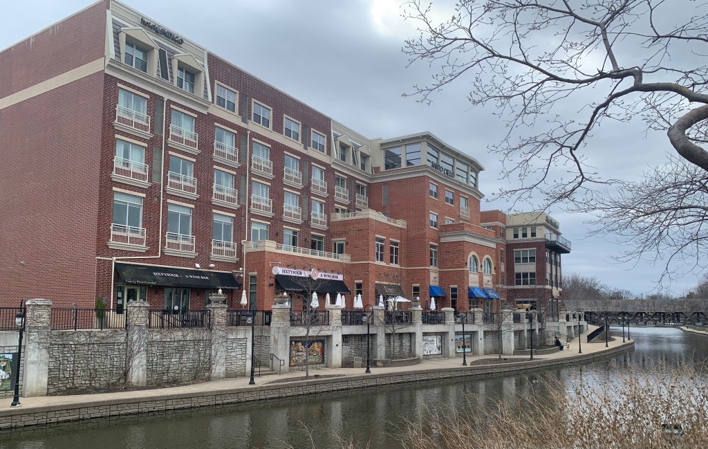Our friend said Hotel Indigo is “the place to stay” in Naperville. It sits right on the Riverwalk and is within walking distance of Naperville’s sites. In addition to being the place, it also appears to be the only place near downtown and the only one not situated on one of the highways that surrounds the city. It was, therefore, an easy choice.