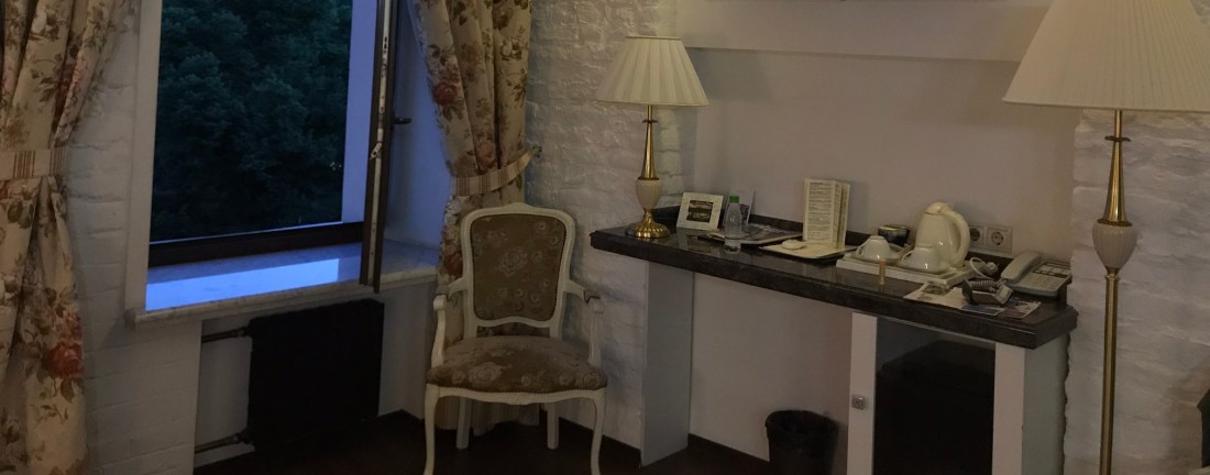 We checked in and headed to our room on the second floor. It was well done but very cozy size-wise (not a problem) and quite dark (a little disappointing). Because we were staying five nights, we decided to ask if another room was available. That led to our choosing an upgraded room, which, quite honestly, doubled the price of the stay (gulp), but we decided it was worth it to have a bit more light and some more space.