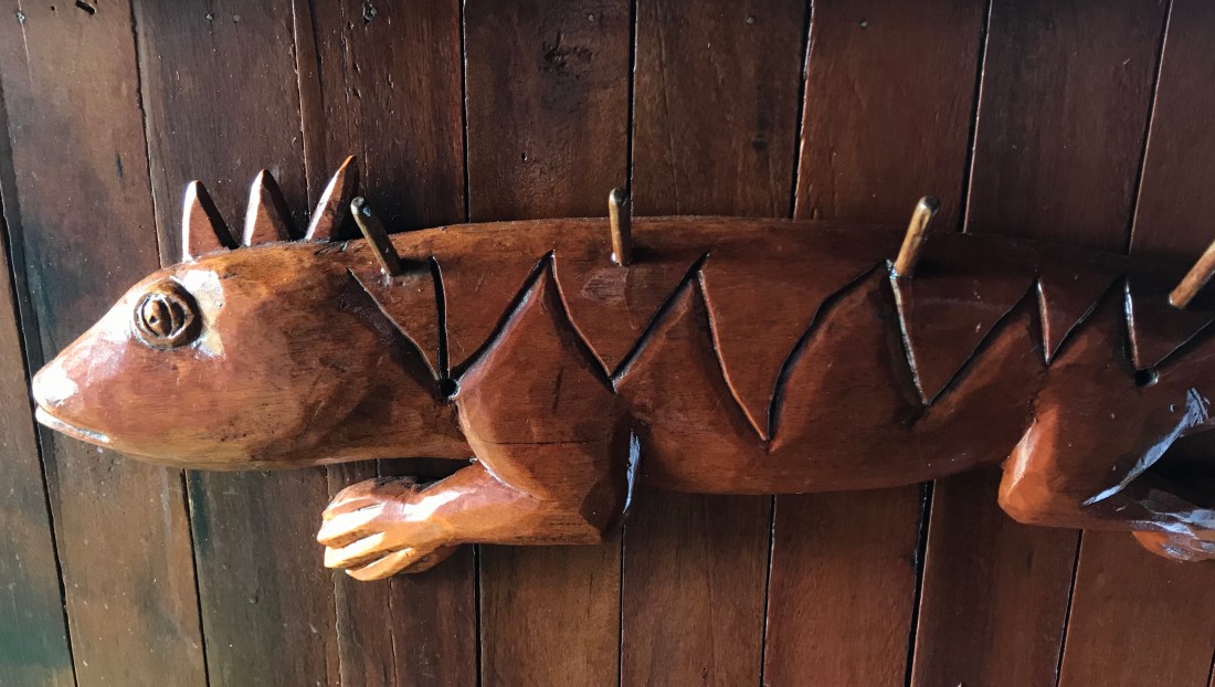 We can be in and out of a hotel room sometimes dozens of times in a day. And we’re often toting bags, coats, umbrellas, hats. We’ve come to appreciate rooms that provide a handy place for stashing all of the stuff that comes and goes with us and for helping keep tight quarters tidy. Closets are good. Wardrobes serve the purpose. But what we really love is pegs (or hooks) mounted on the wall near the door. You don’t have to fuss with doors or hangers, and you don’t have to worry about putting wet things in a closed space. Utilitarian or adorned, pegs are always a welcome site. Four is the ideal number; two for each of us. We think hotels are catching on to pegs — we see them more often than we used to — but we’re still happy to find a place, quite literally, to hang our hats.