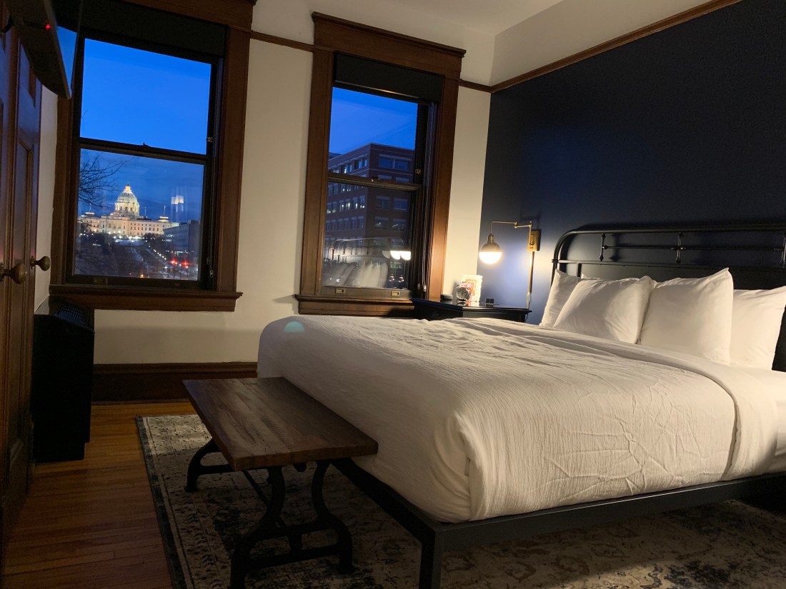 For the previous year, we had watched with anticipation as a former convent — and later a music conservatory — was transformed into downtown St. Paul’s first boutique hotel. Things seemed to be moving slowly, at least based on our observations from the sidewalks and peeks through the windows. But then one day, right before the holidays, the Celeste was open for business. We got there within the first few weeks to have a New Year’s Eve drink in the bar, and a few days later we made plans for a birthday celebration and overnight stay. In the darkness of a January late afternoon, we walked the 10 blocks from our house to the hotel, carrying nothing more than a few toothbrushes.